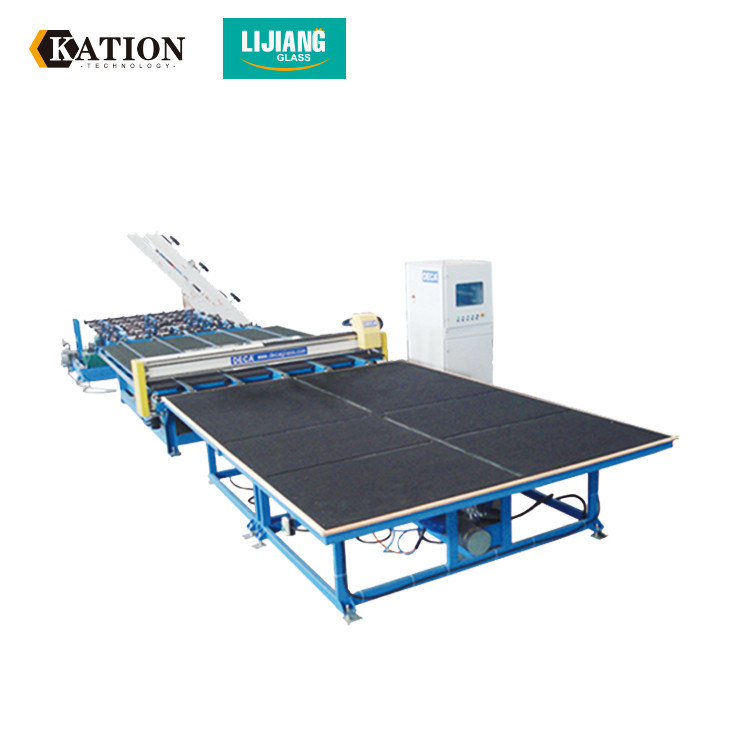 آلة قطع الزجاج الأوتوماتيكيةis to convey the cut glass by conveying belt to worktable, automatically input the position of glass through photoelectric scanning system, and then the cutting head with diamond wheel on the cutter holder moves along X and Y directions respectively by program control, cut the sheet. هو نقل الزجاج المقطوع عن طريق نقل الحزام إلى المنضدة ، وإدخال موضع الزجاج تلقائيًا من خلال نظام المسح الكهروضوئي ، ثم يتحرك رأس القطع بعجلة ماسية على حامل القاطع على طول اتجاهات X و Y على التوالي عن طريق التحكم في البرنامج ، وقطع الورقة. CNC motion controller is used in the control part of the machine, and advanced AC servo motor is used in the drive part. يتم استخدام جهاز تحكم الحركة CNC في جزء التحكم في الماكينة ، ويستخدم محرك سيرفو AC متقدم في جزء المحرك.