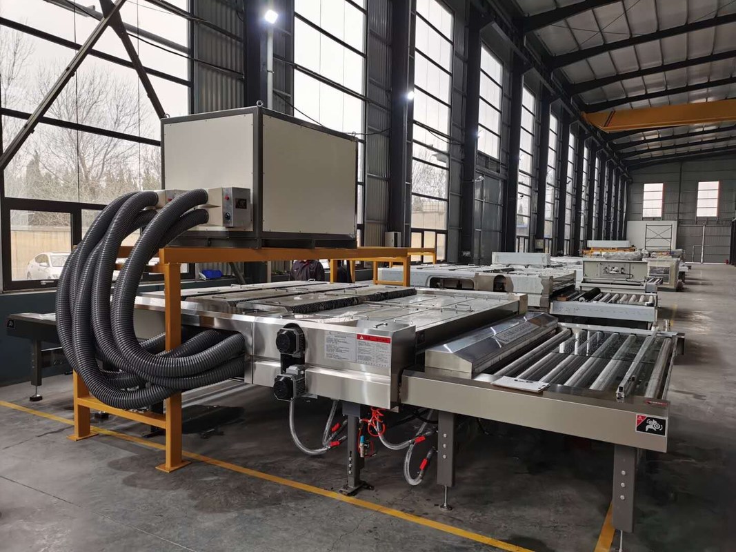 2. The top of the machine is equipped with a stainless steel water tray, and the roller covered by the transfer rubber can be cleaned by itself during the rotation; 2. الجزء العلوي من الماكينة مزود بعلبة مياه من الفولاذ المقاوم للصدأ ، ويمكن تنظيف الأسطوانة المغطاة بمطاط النقل بنفسه أثناء الدوران ؛ it is also equipped with a sprinkler system that can wet the glass surface before the glass enters the cleaning part to improve the cleaning effect. كما أنها مزودة بنظام رش يمكن أن يبلل السطح الزجاجي قبل دخول الزجاج إلى جزء التنظيف لتحسين تأثير التنظيف. The parts of the washing part that are in contact with water are all made of stainless steel, equipped with a circulation pump, the water tank can draw out the washing liquid, and perform three-layer washing. جميع أجزاء جزء الغسيل التي تتلامس مع الماء كلها مصنوعة من الفولاذ المقاوم للصدأ ، ومجهزة بمضخة دوران ، يمكن لخزان المياه سحب سائل الغسيل ، وغسل ثلاث طبقات. Water can get better results). يمكن أن تحصل المياه على نتائج أفضل).